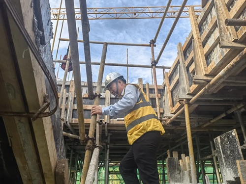 現(xiàn)階段項(xiàng)目同工程進(jìn)度的樓棟有十來?xiàng)潯?ldquo;算下來每天要爬30多層樓。”葉劉杰說,自己是項(xiàng)目的黨員先鋒隊(duì)隊(duì)長,越是過節(jié)越要做好榜樣,質(zhì)量把控、現(xiàn)場(chǎng)安全、施工進(jìn)度、成本控制,都要一絲不茍。
